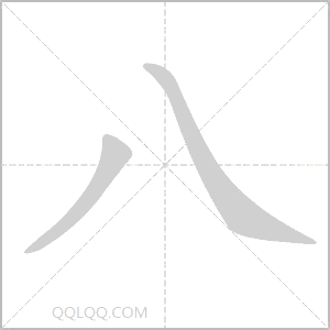 八字笔画:2,构造:八。